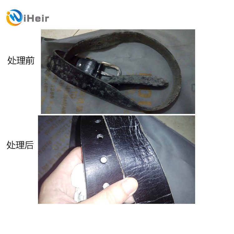 3.戴橡膠手套,用海綿一次蘸取少量的防霉抗菌膏,擦皮帶正反面兩遍,第1遍徹底擦去皮帶表面的霉菌,第二遍賦予皮帶一定的防霉功能。夾縫外采用合適方法將膏弄入,一根皮帶需1.2g左右的防霉抗菌膏iHeir-QF。注:以上步驟處理時,應該與生產(chǎn)、儲存車間分開,避免霉菌傳染。