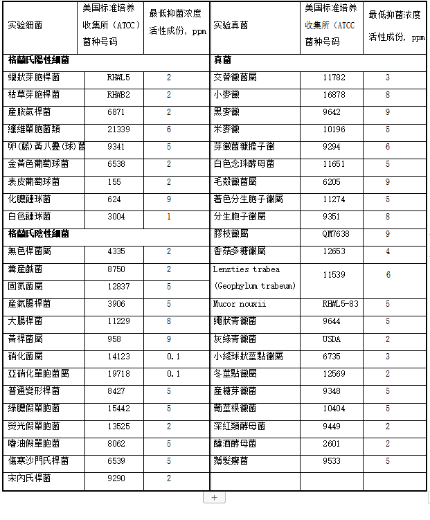 iHeir-TQ環(huán)保涂料防霉(抗菌)劑對(duì)細(xì)菌和真菌的突出低抑菌濃度: