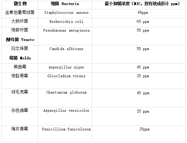 殺菌廣譜,抗菌、防霉;不流失,高效,穩(wěn)定,長效; 可以與食品接觸;在強紫外線和酸雨條件下穩(wěn)定;環(huán)保,對人體與環(huán)境安全;不含砷,不含錫等重金屬; 不揮發(fā),不變色;耐高溫 320 度,和高聚物相容性好。
