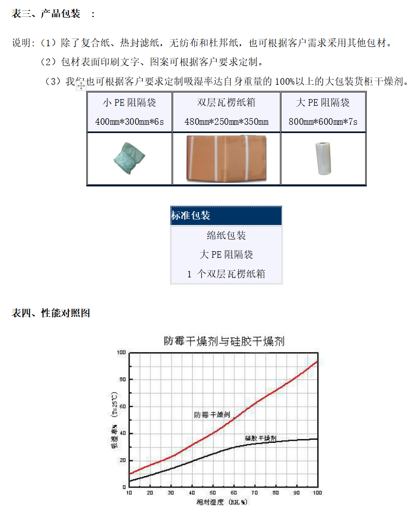 我們公司多生產(chǎn)的防霉干燥劑產(chǎn)品質(zhì)量環(huán)保干燥劑通過SIMT國家測試中心及SGS的認證,產(chǎn)品質(zhì)量達到美國標準MIL-D-3464E及德國標準DIN-55473.相關(guān)技術(shù)表如下: